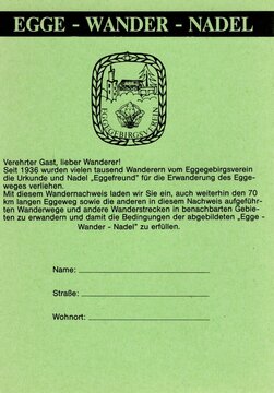 Eggeweg und weitere Wanderungen (insgesamt 400 km) (bestätigt im Wanderpass)